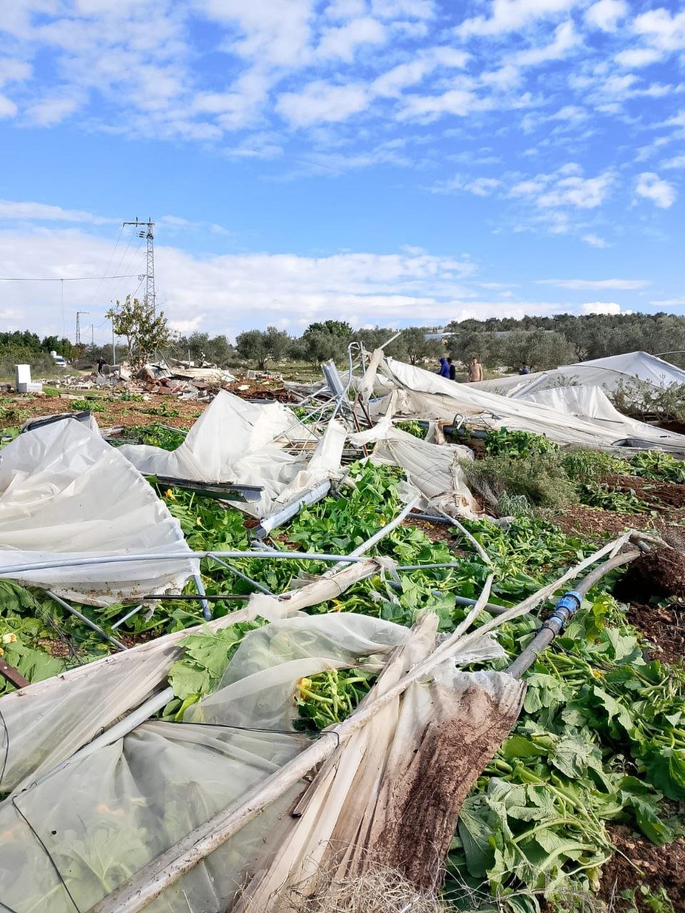 20251215 - Azzun, east of Qalqilia - Israeli occupation forces demolish Palestinian greenhouses (2 photos)