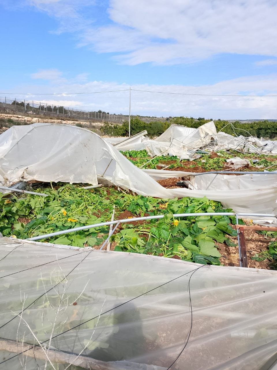 20251215 - Azzun, east of Qalqilia - Israeli occupation forces demolish Palestinian greenhouses (2 photos)