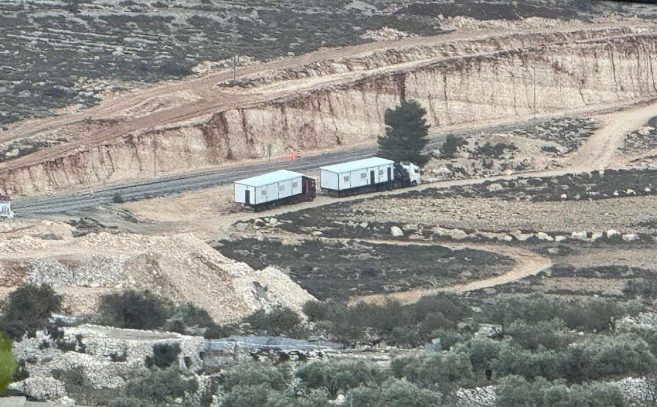 20251207 - Deir Dibwan, east of Ramallah - Colonists are placing caravans to establish an outpost