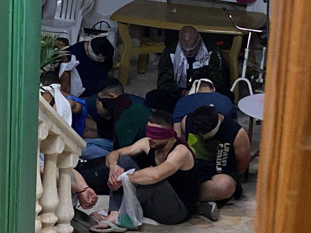20251106 - Beit Rema village, northwest of Ramallah - Eight Palestinians blindfolded and zipped held by Israelis in a room