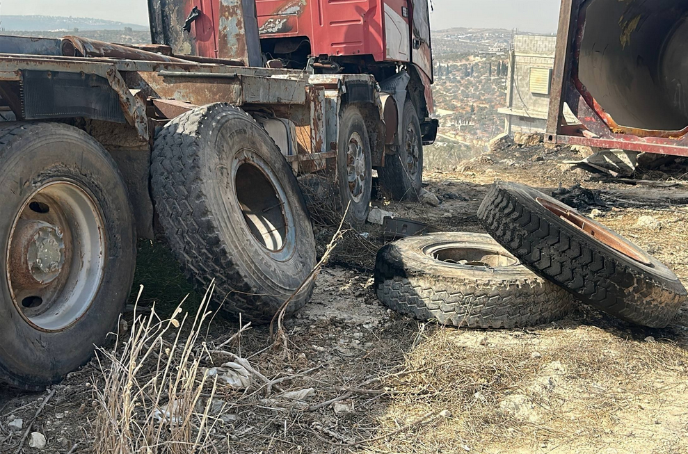 20251102 - Far'ata, east of Qalqilia - The wreckage of the truck after colonizing terrorists set it on fire (4 photos)