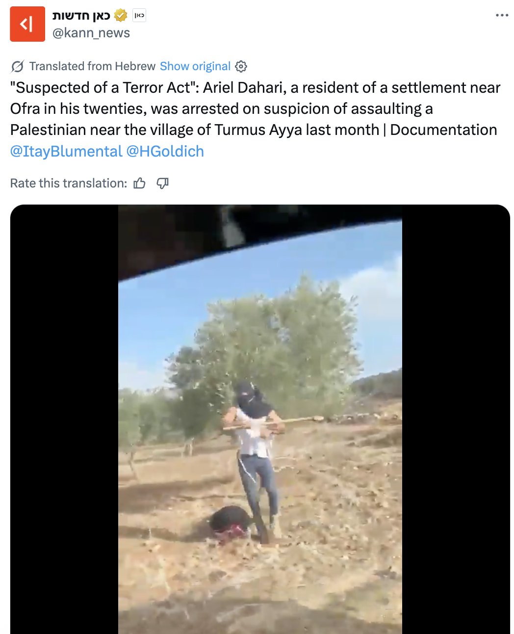 20251109 - Al-Ghayr, north of Ramallah - An Israeli colonizing terrorist assaults a woman while she is harvesting olives.