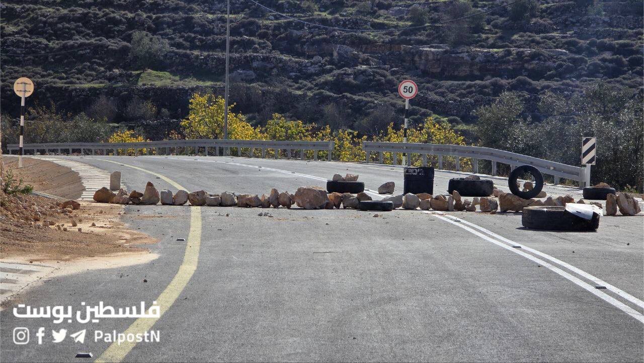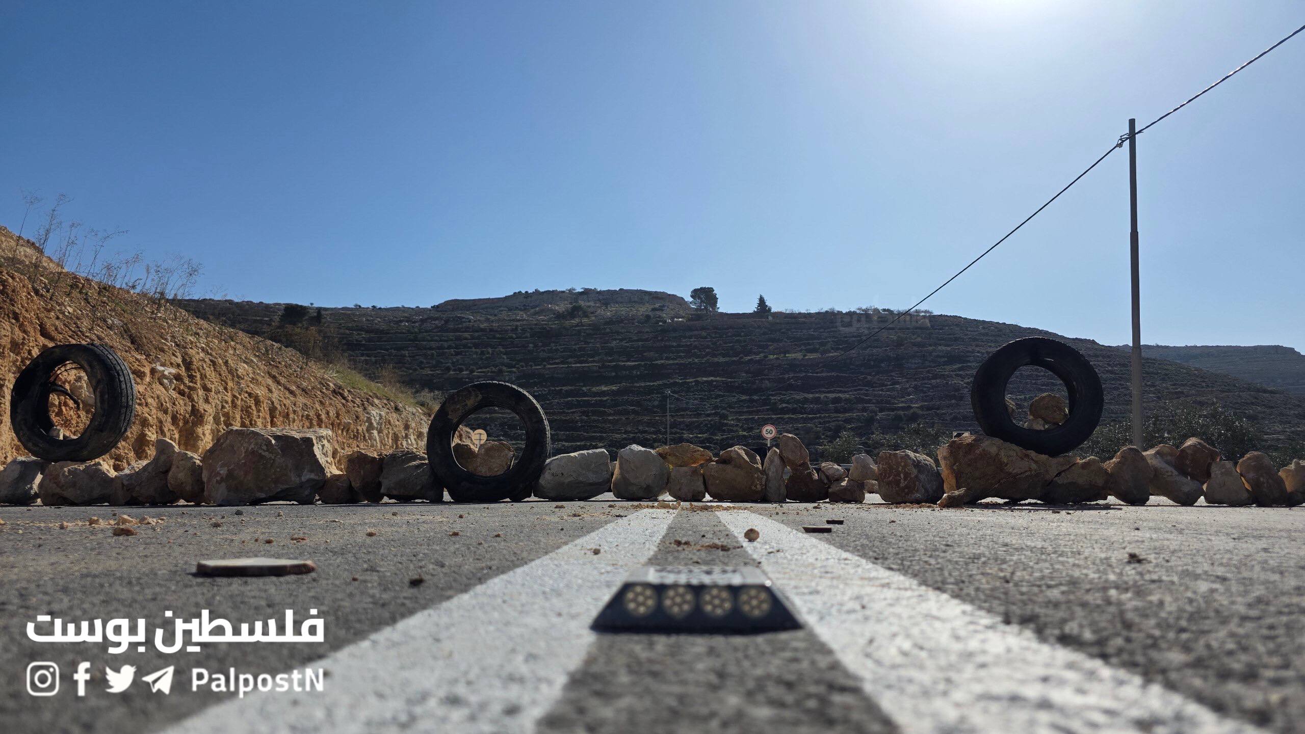 20251222 - Sa'ir, southern occupied West Bank - Colonizing terrorists block road with rocks (4 photos)
