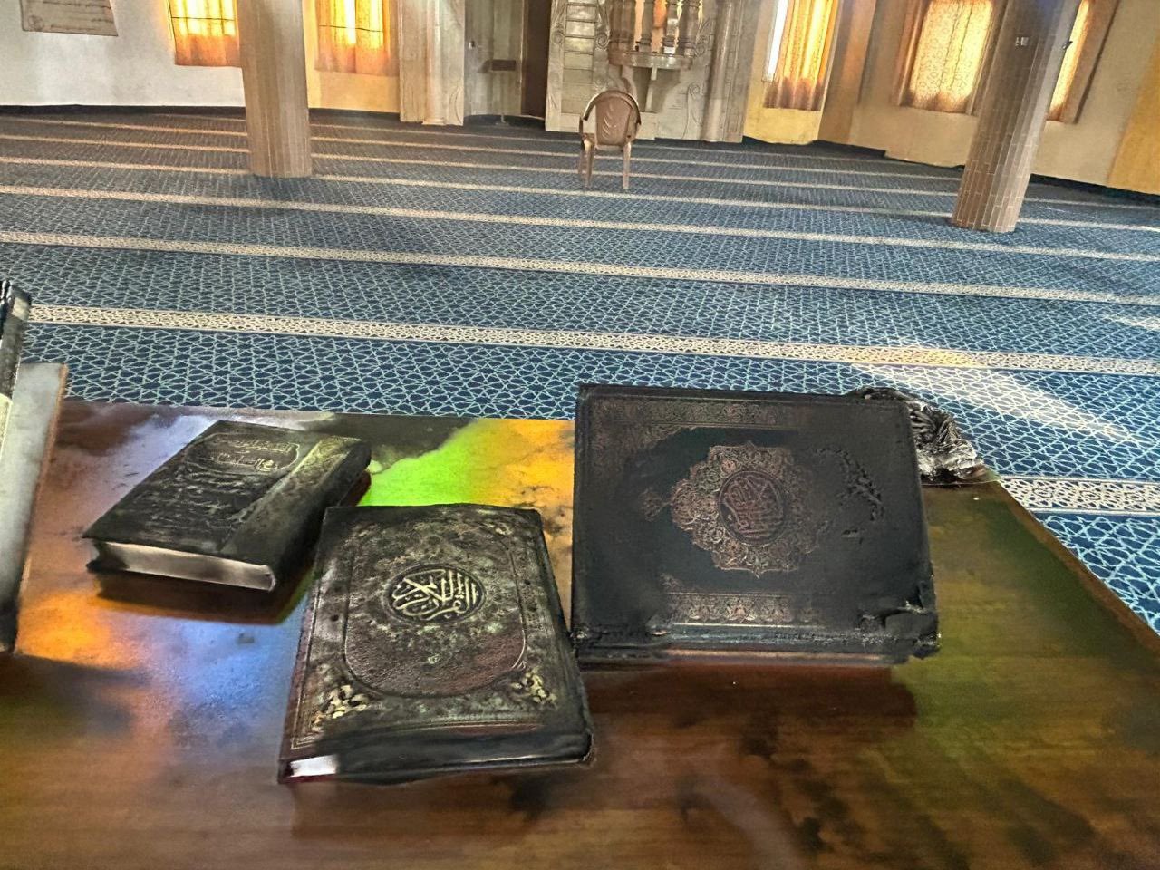 20251113 - Salfit, occupied West Bank - Israeli settler mobs set fire to a mosque located between Deir Istiya and Kifl Haris (4 photos)